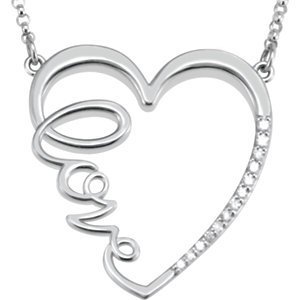 The HEART DIAMOND "LOVE" NECKLACE in either Sterling Silver, 14K Yellow Gold or 14K White Gold holds 1/8 carats of Genuine Diamonds. The diamonds are 12 full round cut 1.00 MM stones. The Pendant weighs approximately 2.50-3.28 grams. This item is approximately 1 1/4" x 1 1/4".