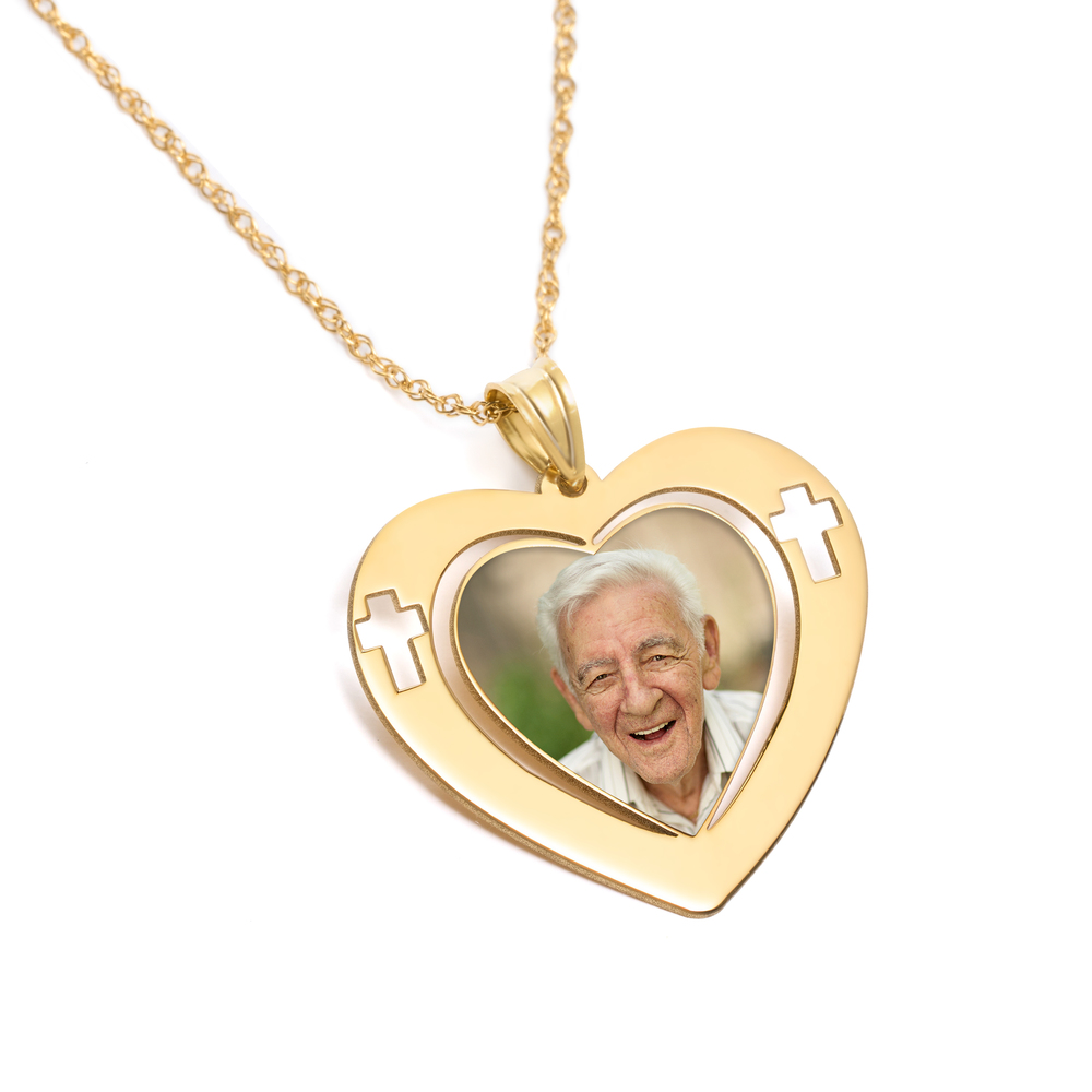 Q: Is it possible to use a picture with a space between the two people in the photo? Also, is it possible to engrave something on the other side of the pendant, for example, a cross... Thank you.