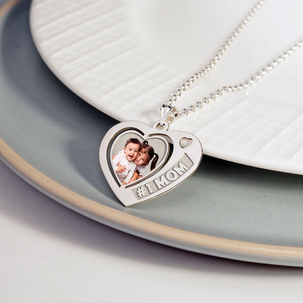 Heart Pendant with # 1 MOM Etched