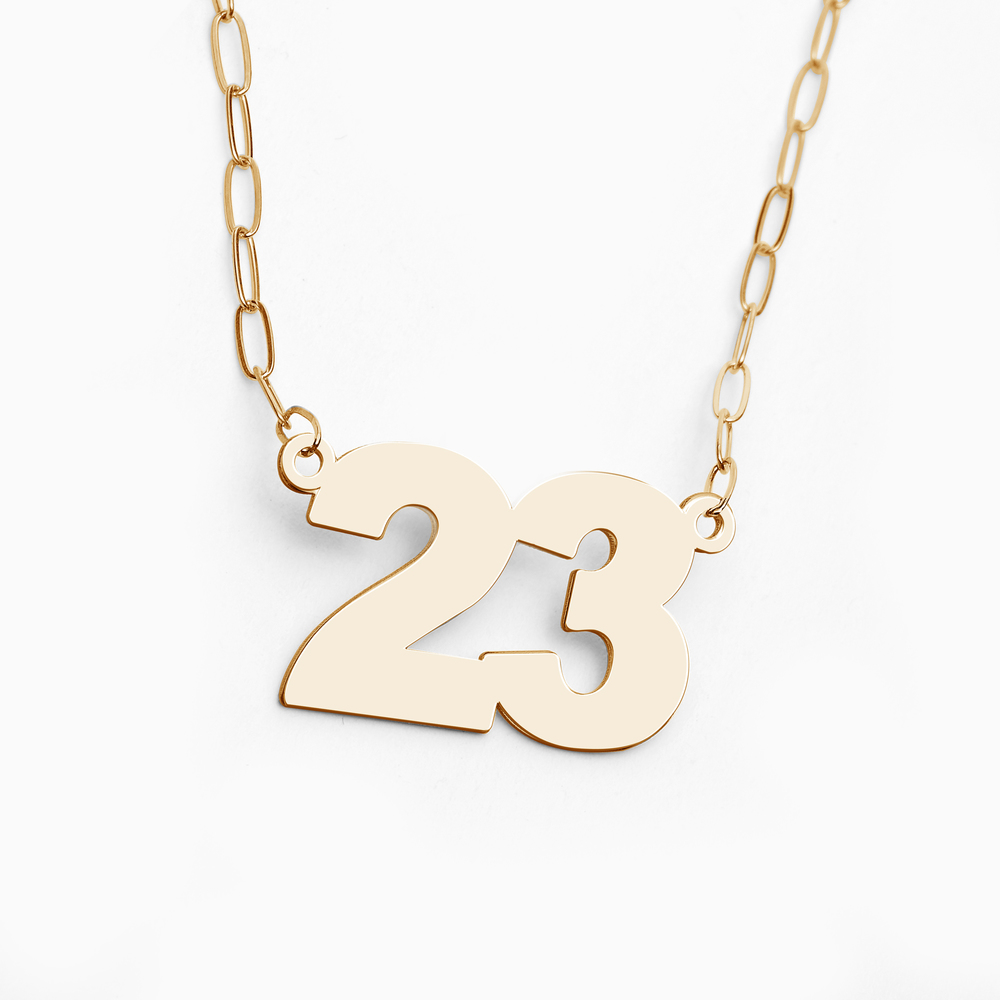 The Number Pendant measures at 3/4 inch and is attached to a cute and dainty 16 inch Paperclip Necklace