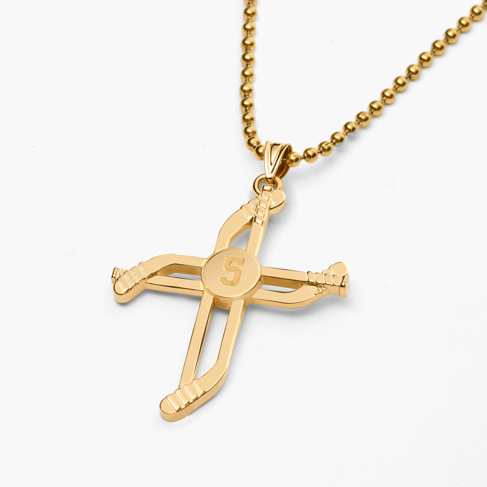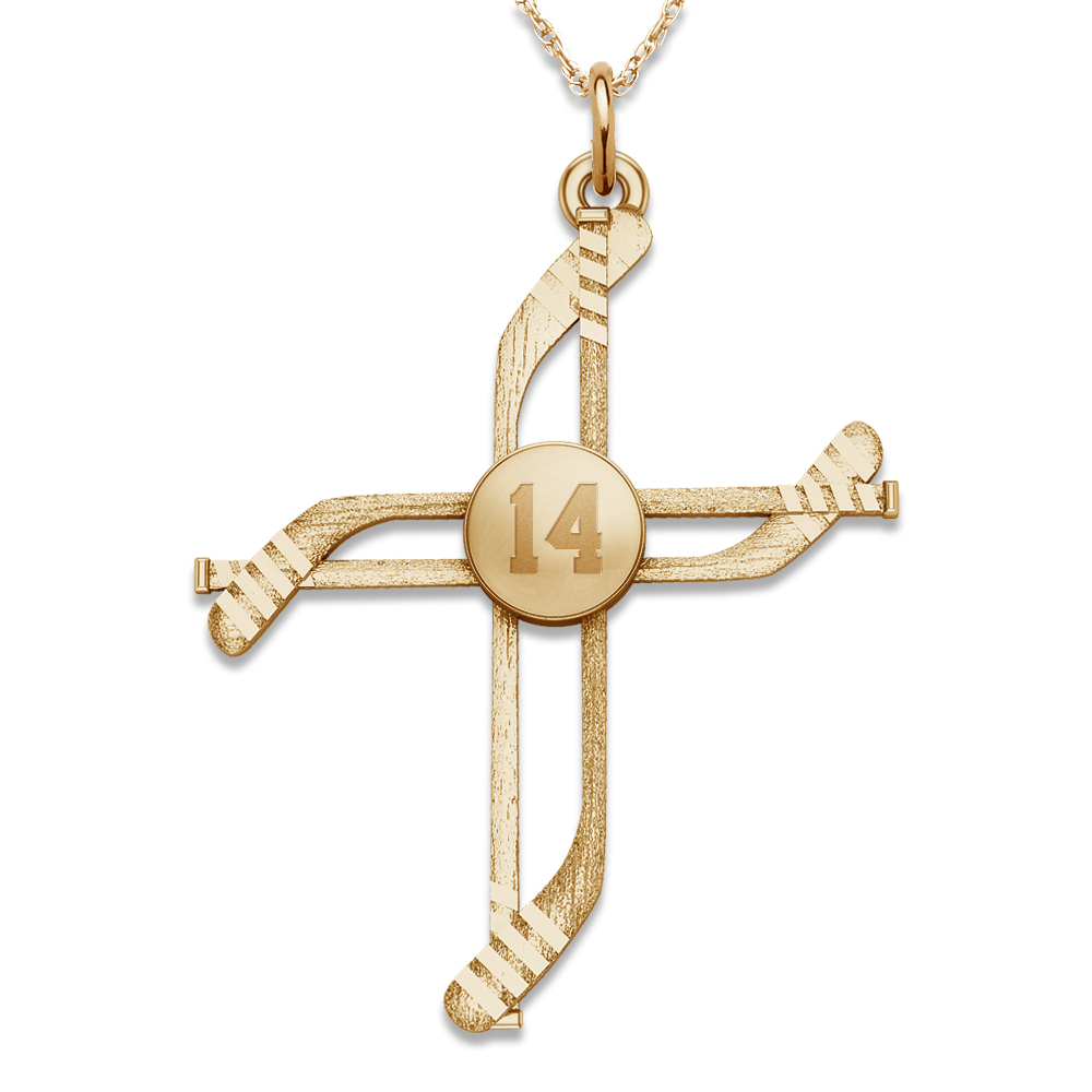 Hockey Stick Cross Pendant with Number with 18 Inch Chain