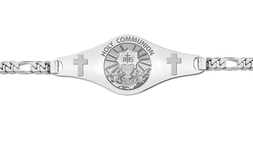 Communion is The Sacrament of the Body and Blood of Jesus. This Communion Bracelet celebrates receiving Jesus for the first time. This design is made specially for any child receiving communion.