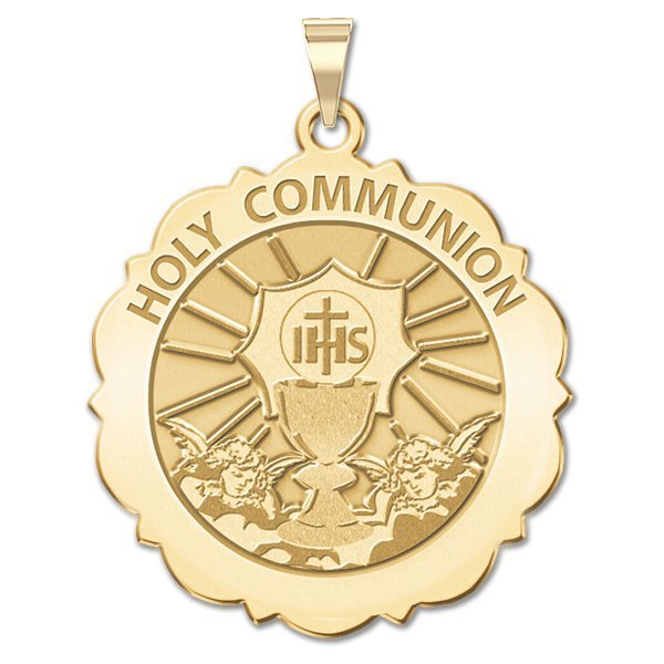 Holy Communion Scalloped Round Religious Medal "EXCLUSIVE"
