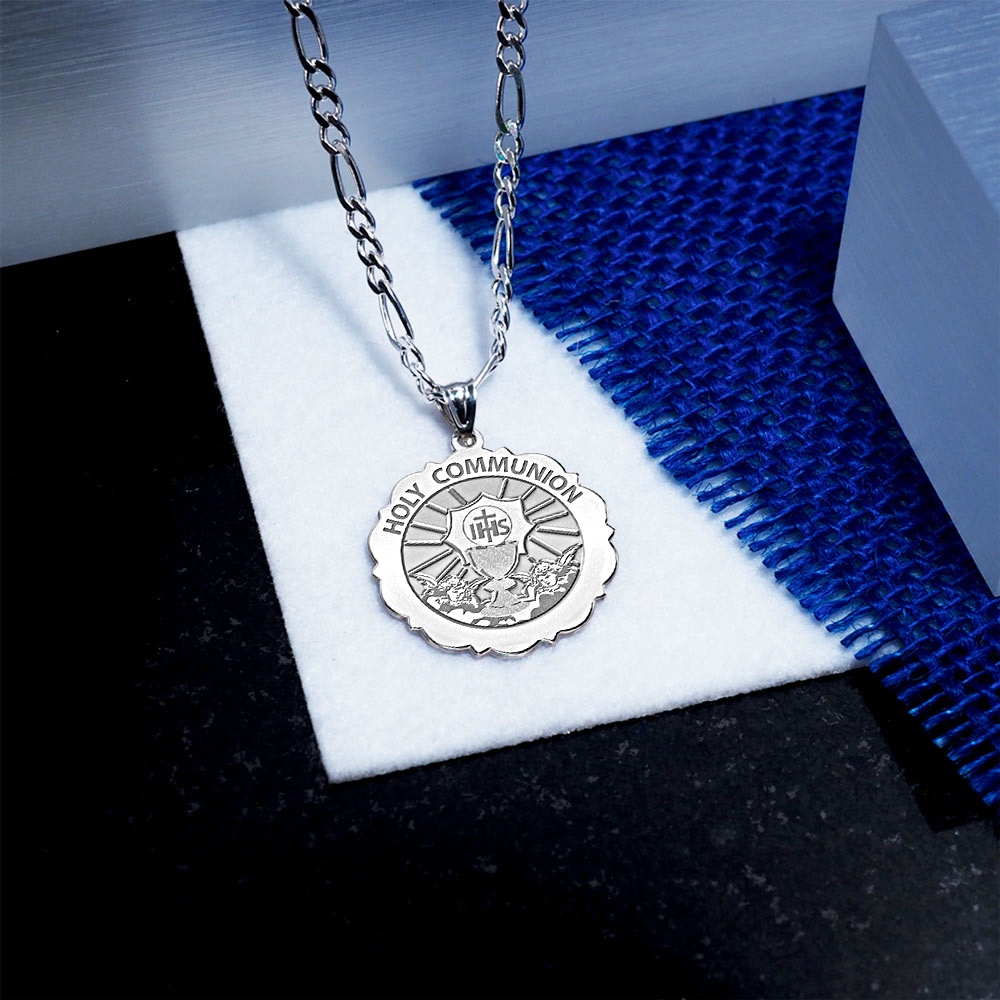 This First Holy Communion Medal is the celebration of receiving Jesus for the first time.