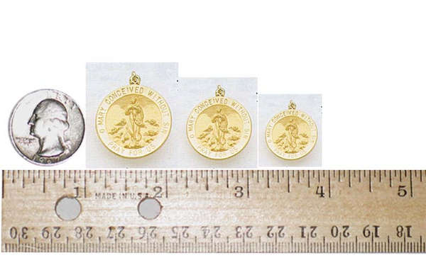 This Solid 14K Gold Medal is of the Immaculate Conception and the medal reads O Mary Conceived Without Sin Pray For Us.