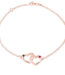 Held together by a rounded box chain, with a interlocking heart in the center, personalized with any name or words of