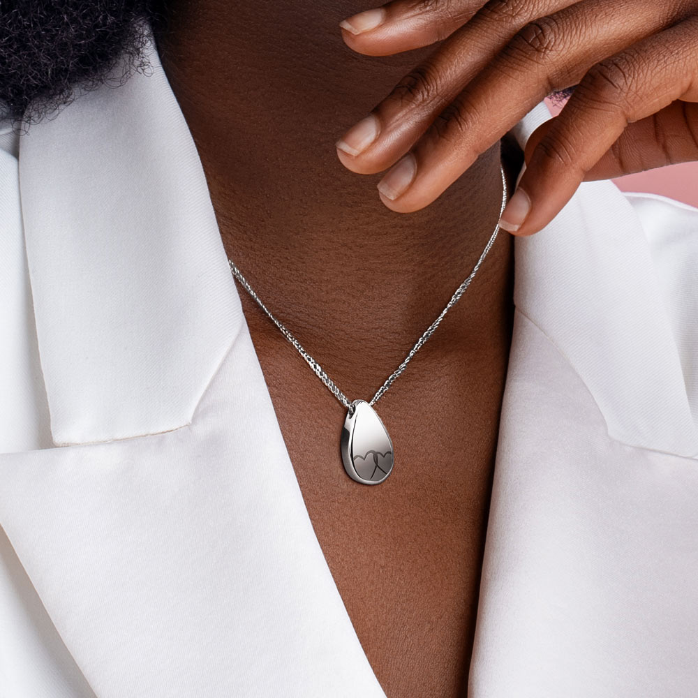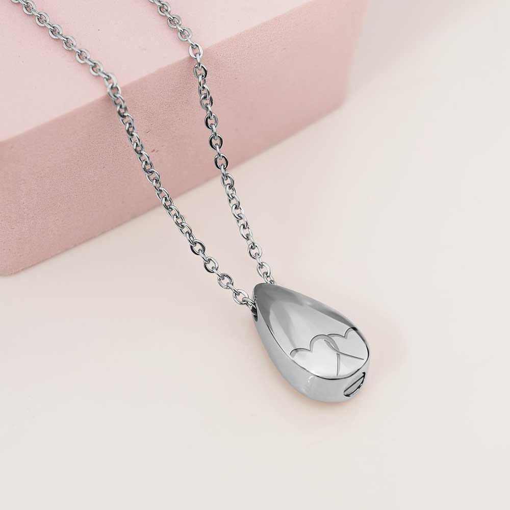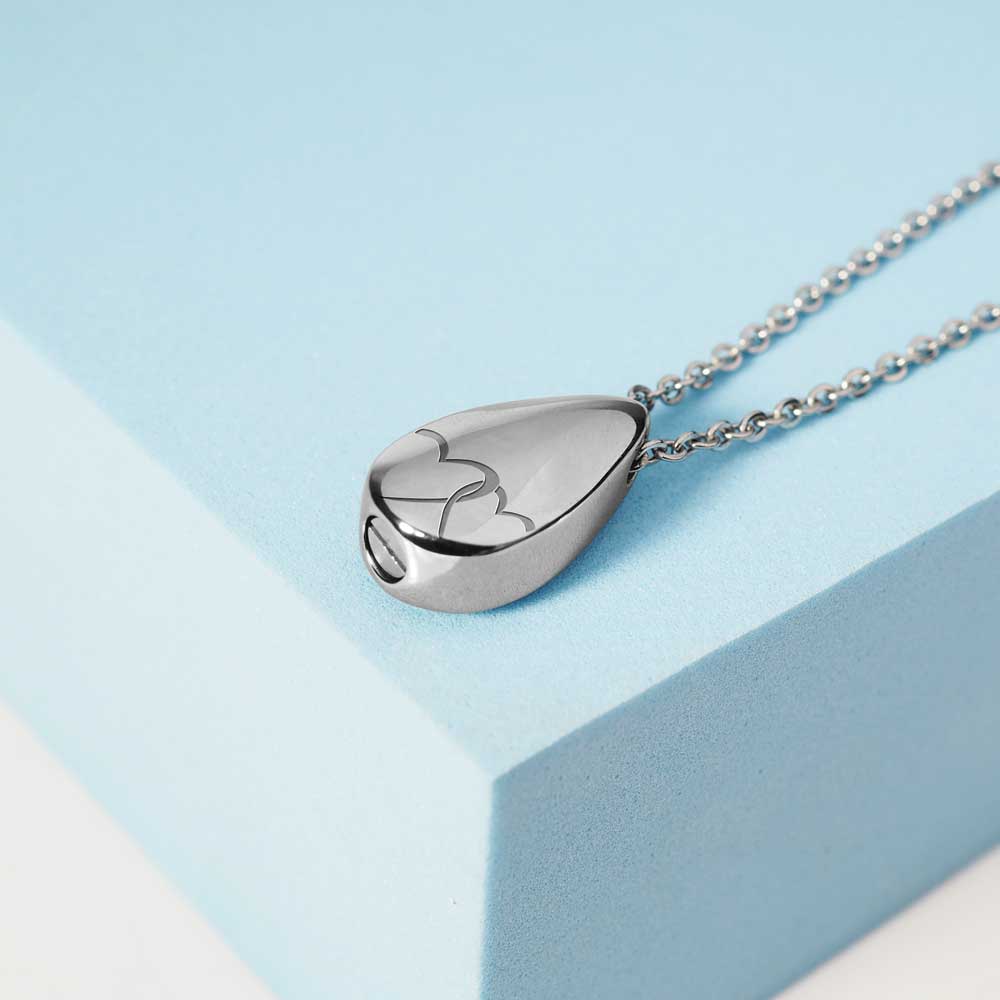This Cremation Interlocking Heart Tear Drop pendant is the perfect way to keep your loved one with you at all times.