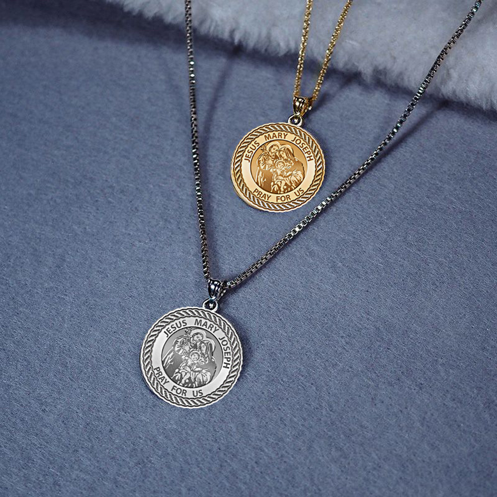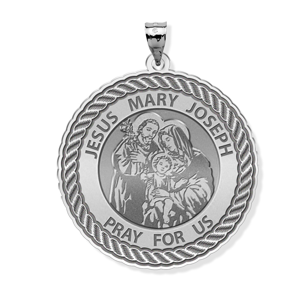 Jesus Mary Joseph Round Rope Border Religious Medal