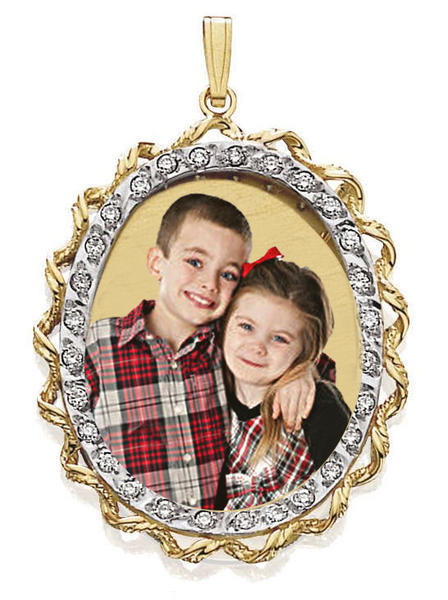 Large Oval with Diamond Frame Photo Pendant Picture Charm