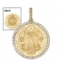 This beautifully hand set Large Diamond Saint Medal is trimmed with 50 beautiful diamonds. 50 2pt stones totaling 1ct. Diamonds are all G Color SI 1