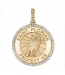 This beautifully hand set Large Diamond Saint Medal is trimmed with 50 beautiful diamonds. 50 2pt stones totaling 1ct. Diamonds are all G Color SI 1