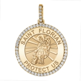 Large Saint Florian Diamond Round Religious Medal - "EXCLUSIVE"