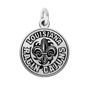 Louisiana Lafayette Ragin' Cajun Charm made in solid sterling silver with antiqued background. Louisiana Lafayette charms can be worn on a chain or dangle them from a bracelet. Our jewelry has the finest detail and are the highest quality of any Ragin' Cajun charm or pendant available.