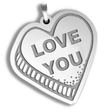 If you can never find the right way to tell the special someone how you feel, here is your chance. Carry these sayings with you at all times. * Perfect Gift for Wife, Girlfriend, Partner and even children. * Ships the same or next business day. * 3/4 Inch is approximately the size of a US Nickel & 1 Inch the Size of a US Quarter. * 3/4 Inch size if perfect for a necklace or Charm Bracelet. * Request a split ring in the special instructions box we provide you to easily attach to a charm bracelet. * Solid Sterling Silver or solid 14K Yellow or White Gold.