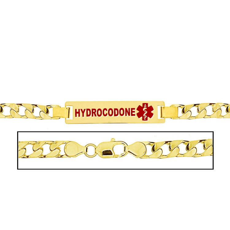 Men's Hydrocodone Curb Link Medical ID Bracelet