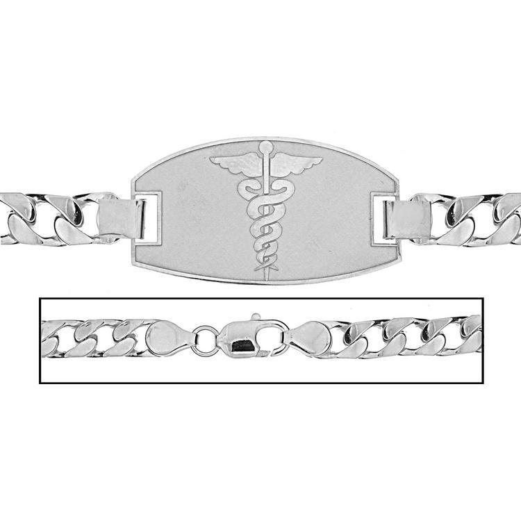 Solid 14K White Gold Men's Curb Link Medical ID Bracelet