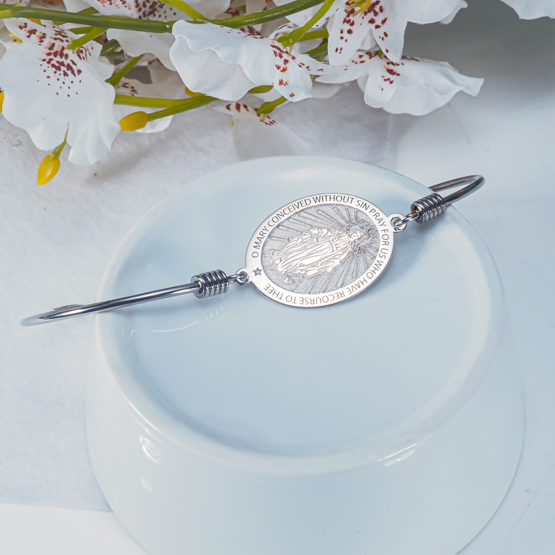 Miraculous medal is sterling silver or gold plated and is 1 1/4 Inch by 3/4 inch - and is guaranteed never to fade, peel or tarnish.