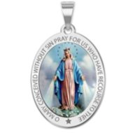 We can engrave a message on the back of your Miraculous Medal by altering the size of the symbol on the back leaving