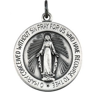 "I've purchased two Miraculous Medals from you at different times. Both times I've been highly satisfied. They came when expected and there were no hidden costs. Actually look so much better than pictures on site. No photo does jewelry any justice. The recent one I got was in sterling silver. I bought it for a friend for Mothers Day as she keeps admiring the one I always wear. Won't she be surprised. Thank you for your meticulous work in creating this fine jewelry."