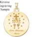 We can engrave a message on the back of your Miraculous Medal by altering the size of the symbol on the back leaving room for your engraving.