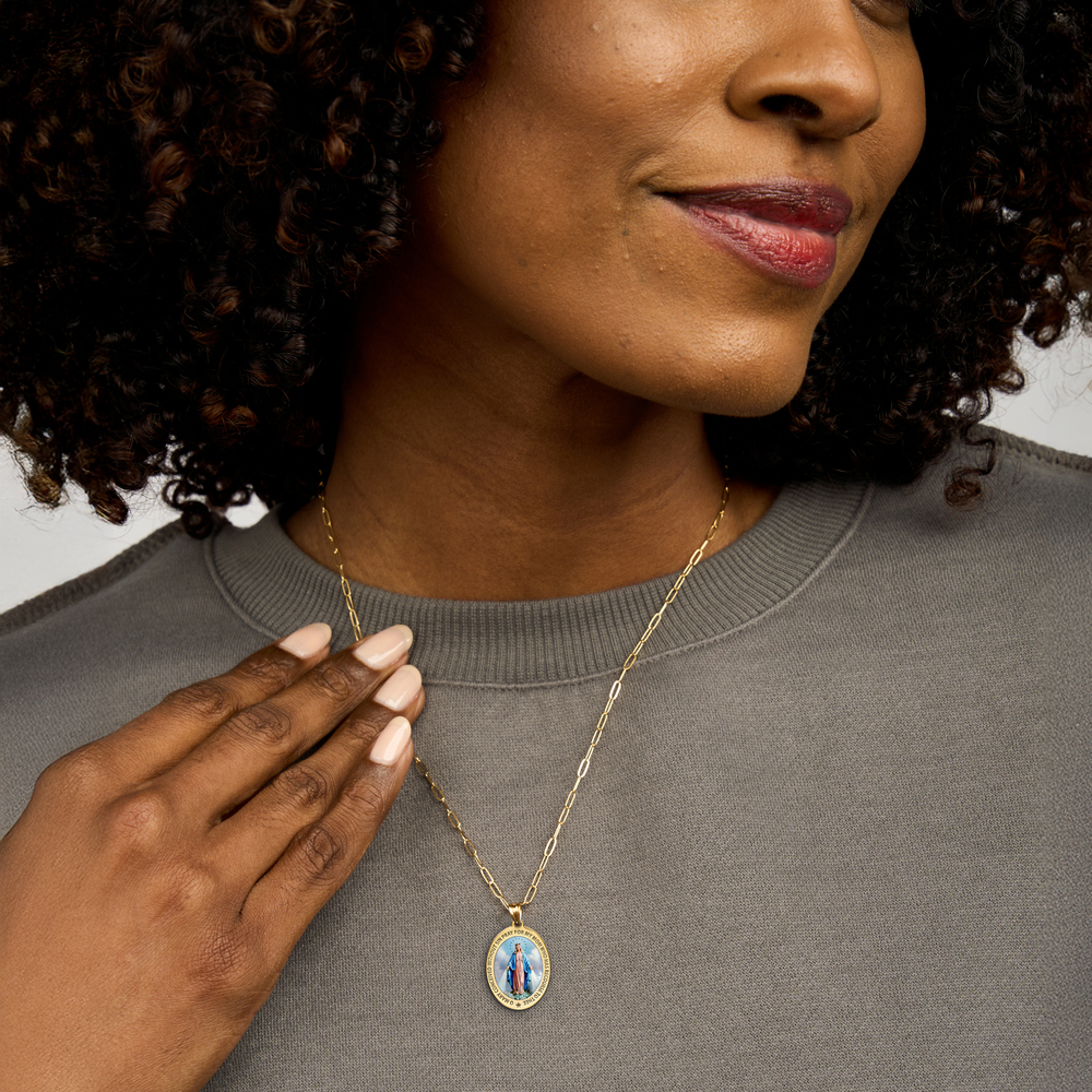 "I've purchased two Miraculous Medals from you at different times. Both times I've been highly satisfied. They came when expected and there were no hidden costs. Actually look so much better than pictures on site. No photo does jewelry any justice. The recent one I got was in sterling silver. I bought it for a friend for Mothers Day as she keeps admiring the one I always wear. Won't she be surprised. Thank you for your meticulous work in creating this fine jewelry."