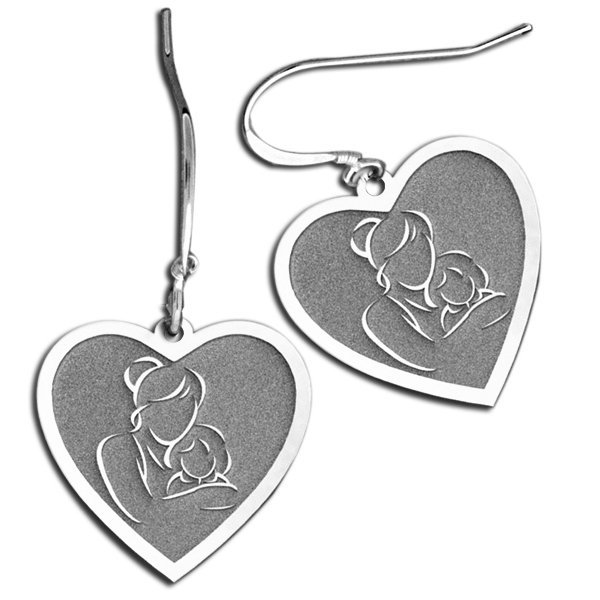 Mother and Daughter Heart-Shaped Earrings (w/ Kidney Wire)