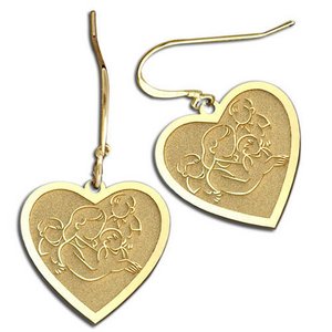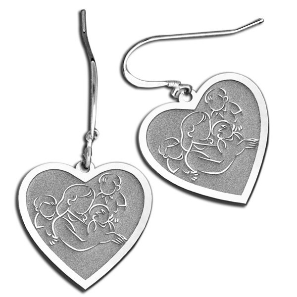 Mother with Three Sons Heart-Shaped Earrings (w/ KidneyWire)