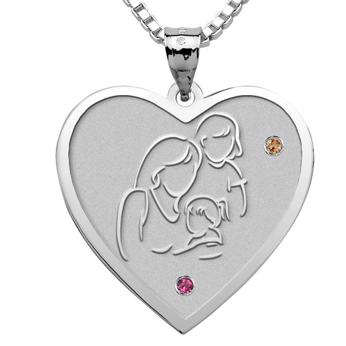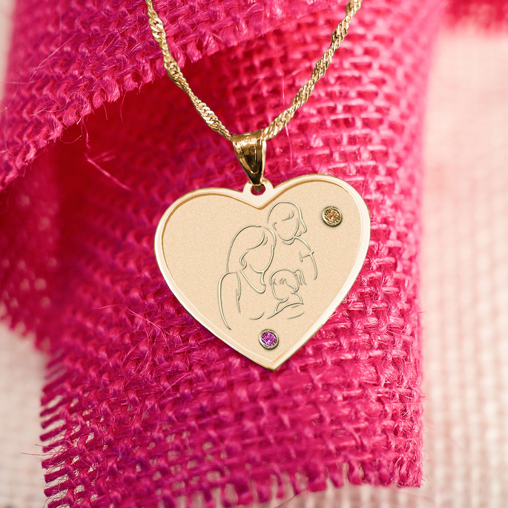 Mother with Two Daughters - Heart Pendant with Birthstones