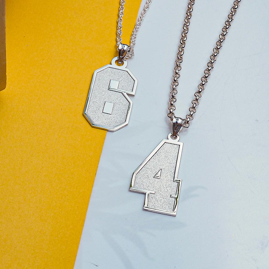 Your custom sports pendant is available in 14K Solid Yellow Gold, 14K Solid White Gold, Or Sterling Silver.