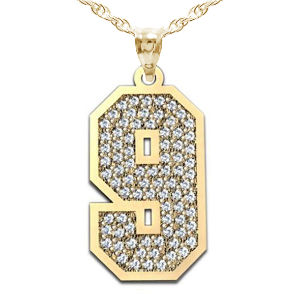 Jersey Single Number Charm or Pendant Paved with Diamonds