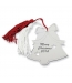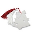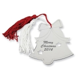 This Item Measures 3.5 inches in width and 4.5 inches in height. The ornament is made with non-tarnish nickel and the tassel is included for easy hanging.