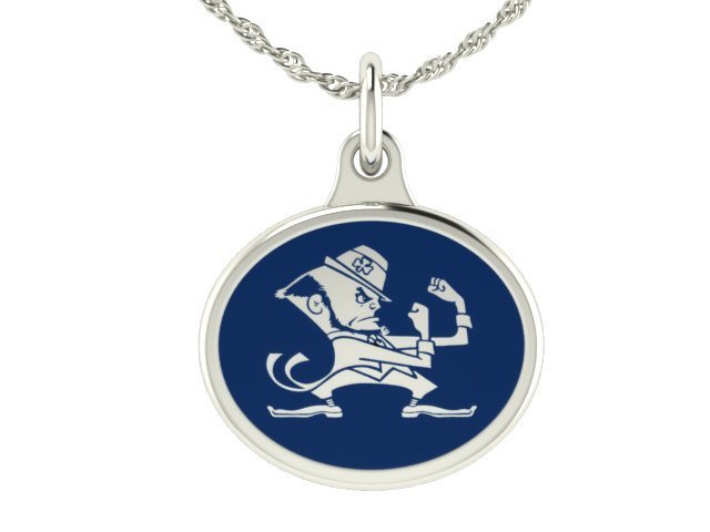 Solid sterling charm in Notre Dame Colors. This charm features a silver background with blue accents. A grueling 10 step manufacturing process results in a unique charm that represents the Fighting Irish spirit with exacting detail. Spirit with style!