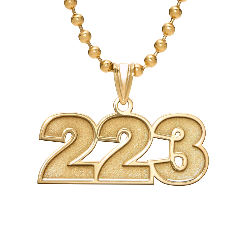 Your custom sports pendant is available in 2 sizes and in 14K Solid Yellow Gold, 14K Solid White Gold, Or Sterling Silver. Most can handle a name, team name, and even the number the players wear.
