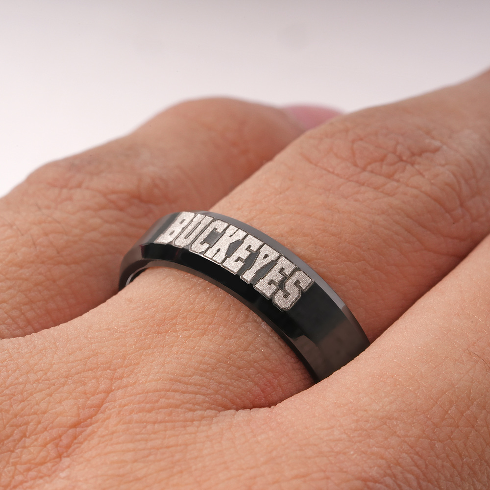 Show your team pride with this sleek and stylish Ohio State Black Stainless Steel Ring. Crafted from durable, high-quality black stainless steel, this ring features a bold, modern design that combines strength and sophistication. The polished finish offers a subtle shine while the engraved Ohio State logo adds a touch of school spirit. Perfect for Ohio State fans and alumni, this ring is a great way to display your loyalty in a fashionable and timeless way.