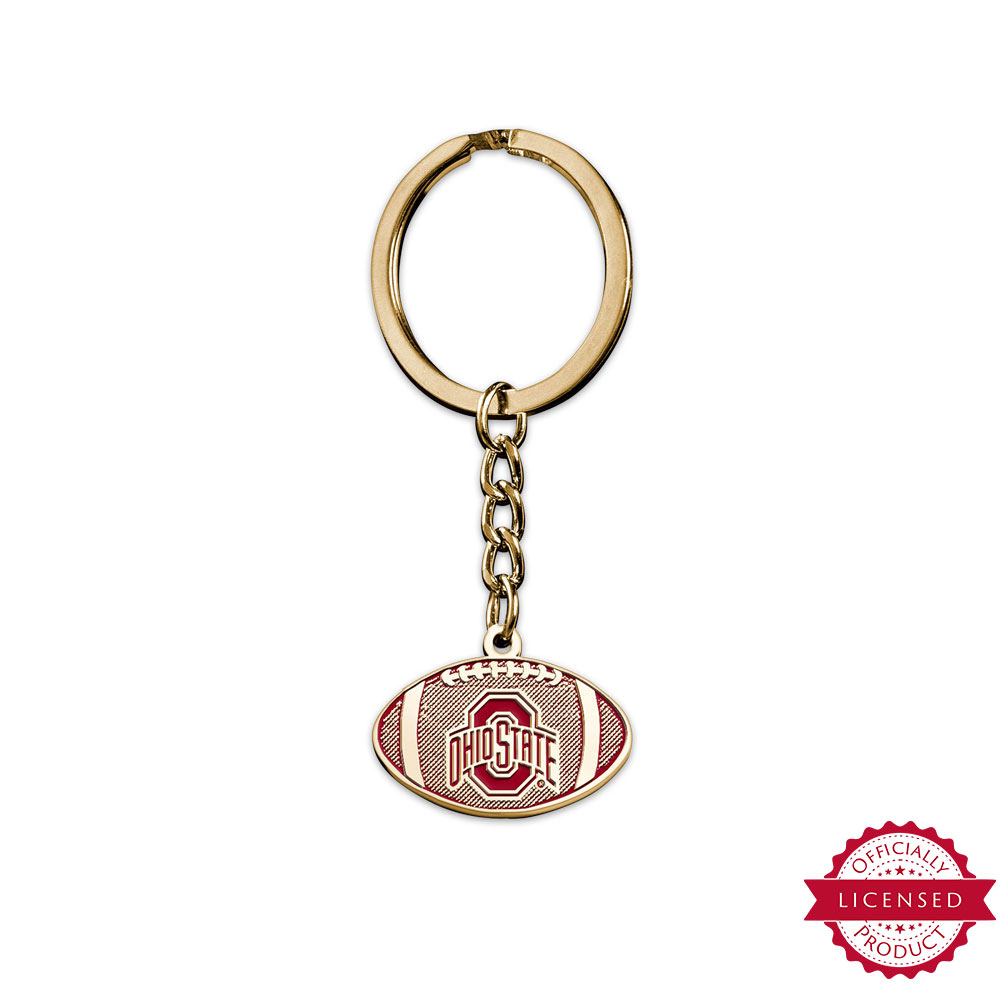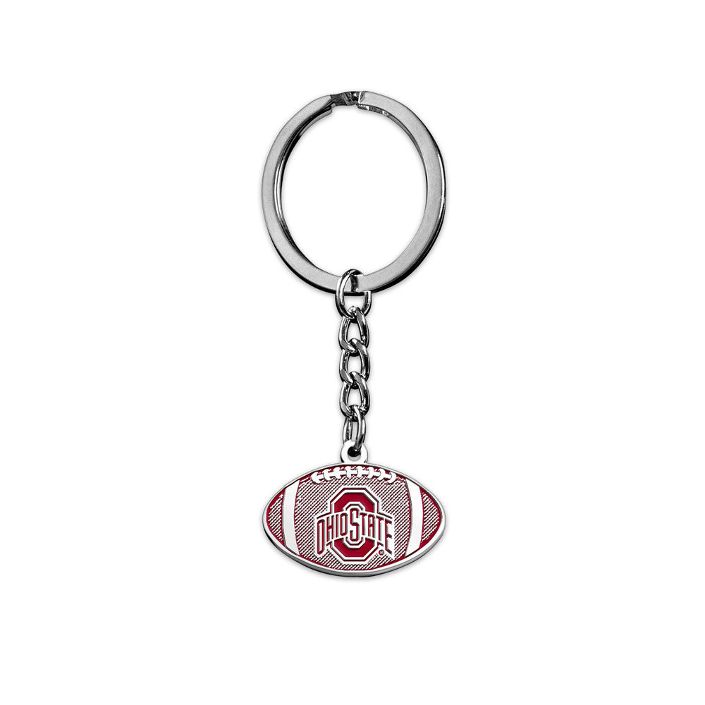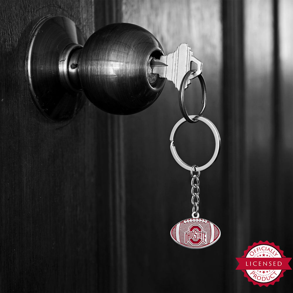GO BUCKEYES! What better way is there to display your team pride than with this football shaped keychain featuring the