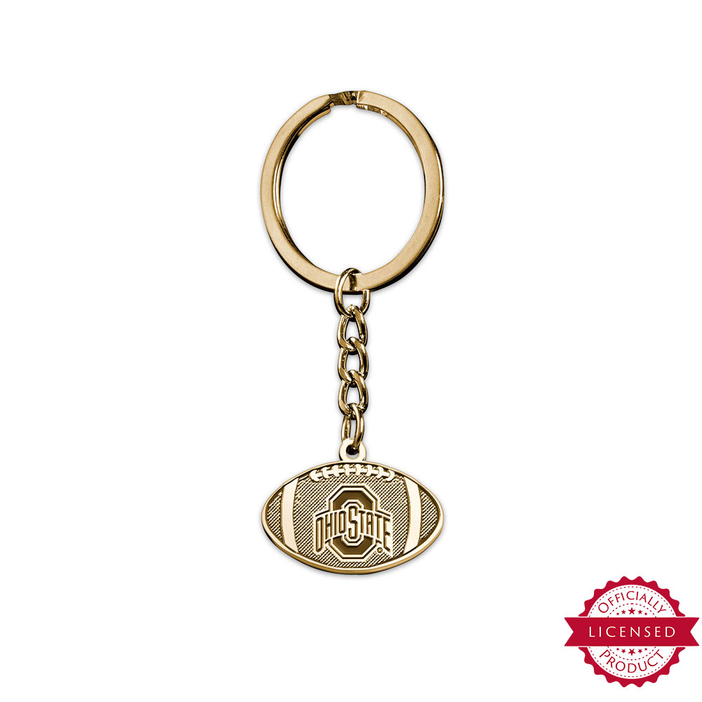 GO BUCKEYES! What better way is there to display your team pride than with this football shaped keychain featuring the