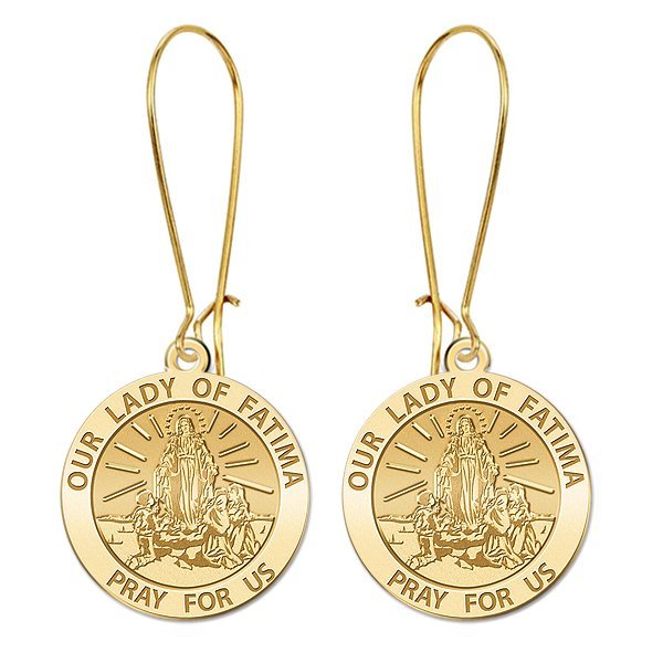 *Price Per Pair * Each Earring is 15mm / 1/2" inch (smaller than a dime) Our Lady of Ftima (pronounced [fatim]) is the title given to the Blessed Virgin Mary by those who believe that she appeared to three shepherd children at Ftima, Portugal on the 13th day of six consecutive months in 1917, starting on 13 May, the Ftima holiday. The three children were Lcia dos Santos and siblings Francisco and Jacinta Marto. The title of Our Lady of the Rosary is also sometimes used in reference to the same apparition (although it was first used in 1208 for the reported apparition in the church of Prouille); because the children related that the Lady in the apparition specifically identified Herself as "the Lady of the Rosary." It is also common to see a combination of these titles, i.e., Our Lady of the Rosary of Ftima