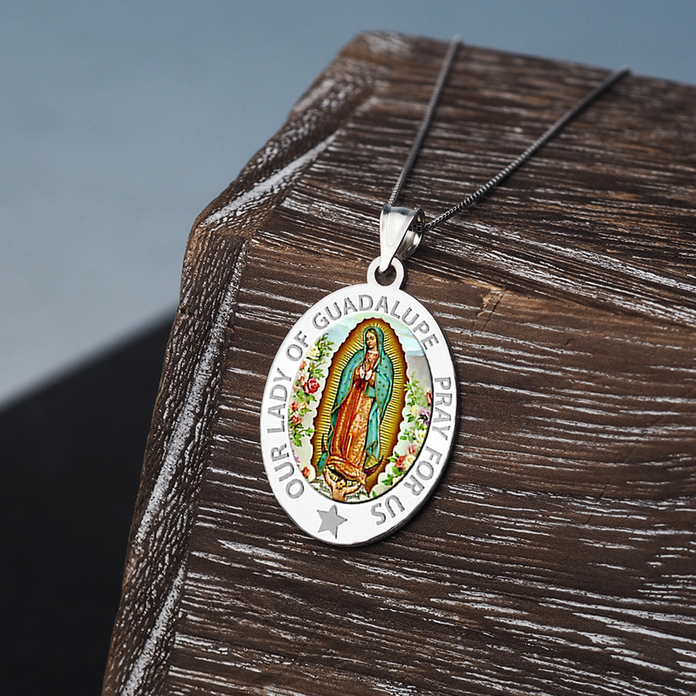 Our Lady of Guadalupe "Color Laser" Religious Medal OVAL "EXCLUSIVE"