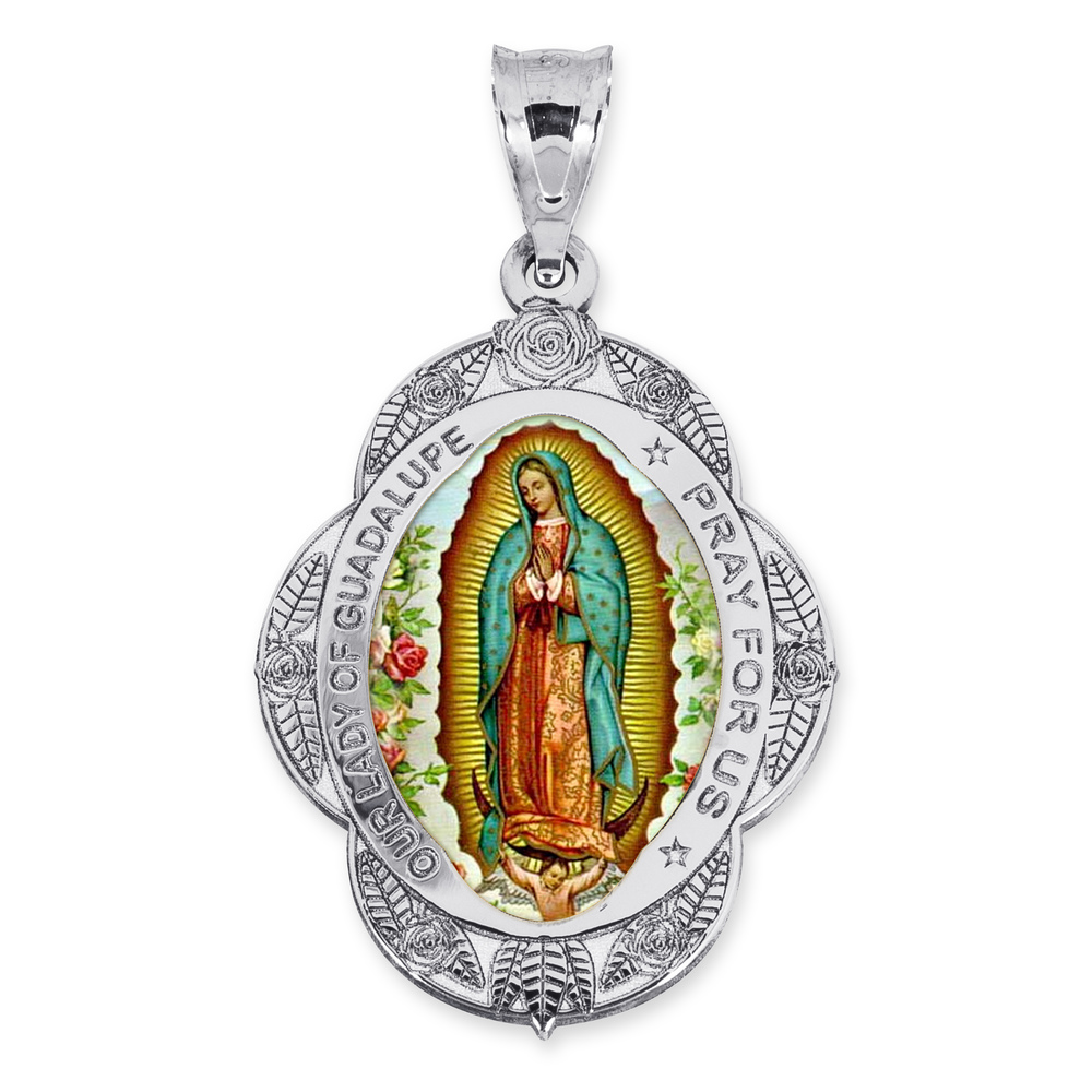 Our Lady of Guadalupe Oval Floral Trimed Religious Color Medal "EXCLUSIVE"