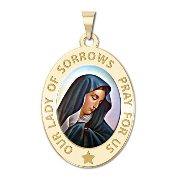 Our Lady of Sorrows s a title of the Blessed Virgin Mary and the name of a feast celebrated on September 15. The Seven Dolours of the Virgin (or Seven Sorrows of the Virgin) is a related devotion in the Catholic Church which has its origins in the New Testament prophecy of Simeon (Luke 2:35).