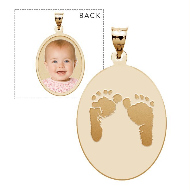 Custom Footprint Oval Charm or Pendant with Reverse Photo Option