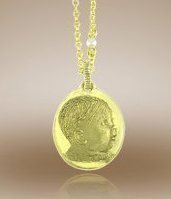 Turn your memorable photos into gold keepsakes. Upload, E-mail, or Mail in your photos to create a high quality heirloom that will last a lifetime. Keep your loved ones close to your heart forever. * This Necklace comes in either 14k Gold or 18K Gold. * Item can be engraved on the reverse side with a special message or monogram to further personalize your keepsake. Size: Under 3/4 Inch Wide x 3/4 Inches Tall