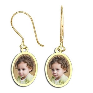 Oval Shaped Photo Pendant Kidney Wire Earrings