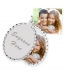 A:  We digitally enhance your photos and can bring the two people close together in the photograph. There´s a special instructions box upon placing the order so that you can add any special requests. We can engrave a cross on the reverse side, again just let us know in the same box provided and we´ll take care of it for you.