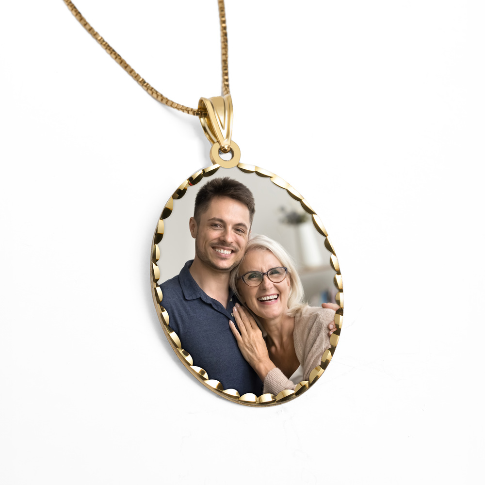 Oval w/ Diamond Cut Edge Photo Engraved Pendant