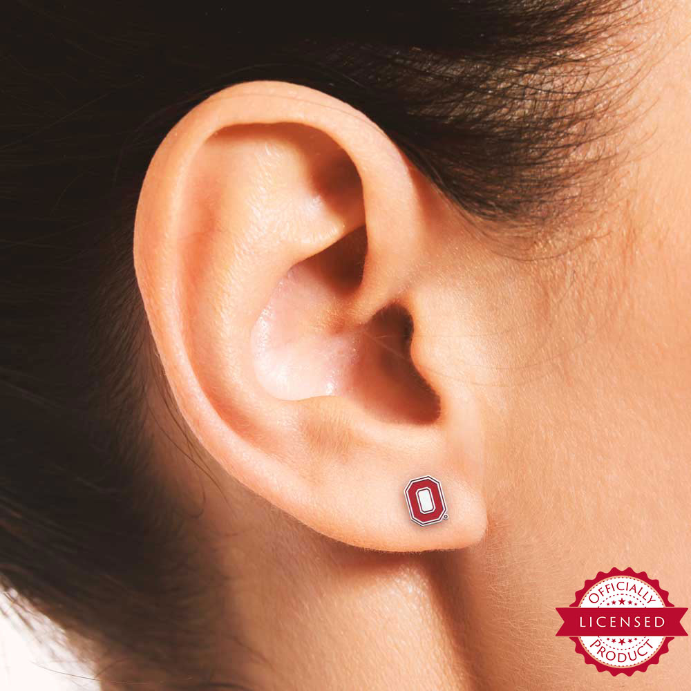 This pair of Ohio State earrings is available in Stainless Steel, Solid .925 Sterling Silver, Black Sterling