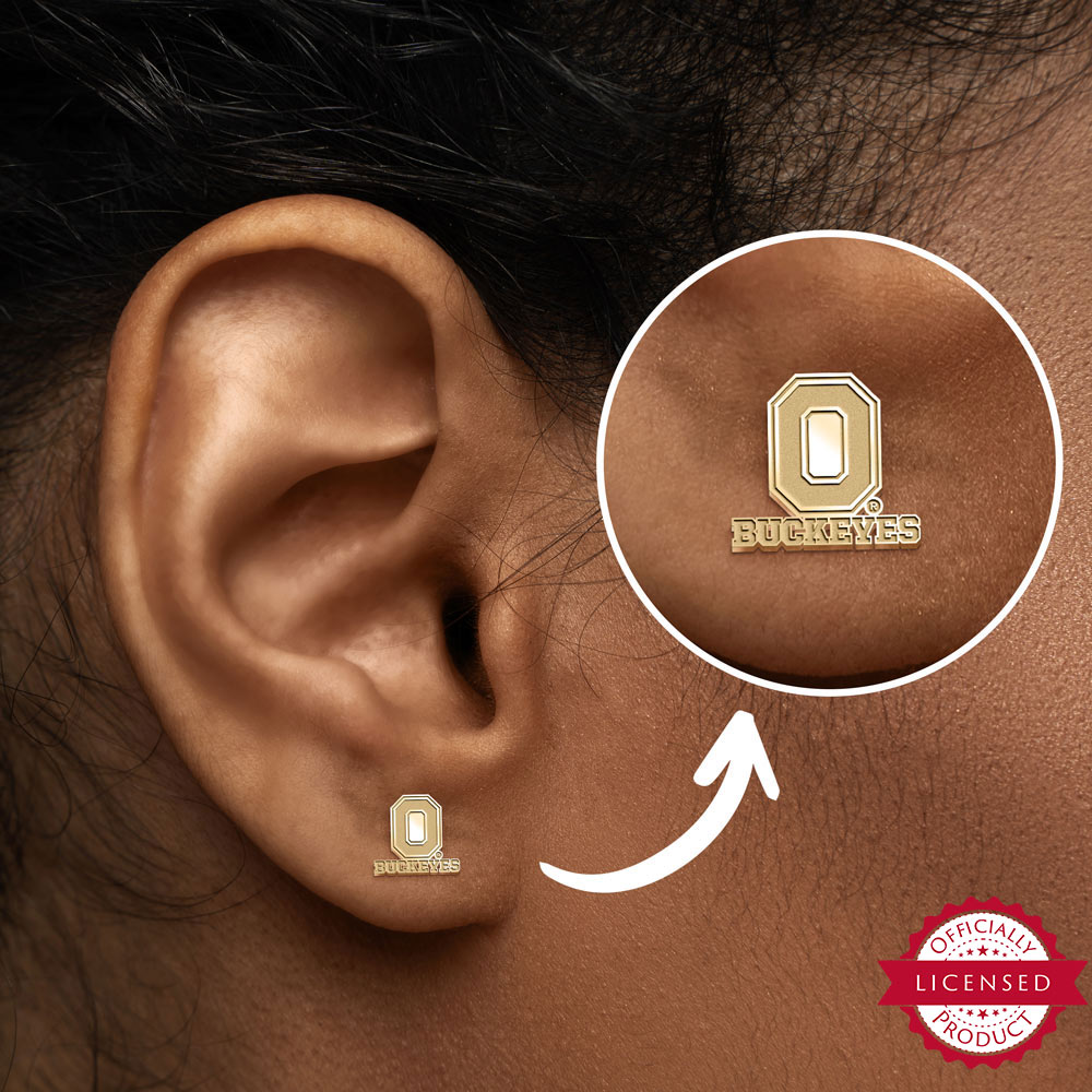 This pair of Ohio State earrings is available in Stainless Steel, Solid .925 Sterling Silver, Black Sterling