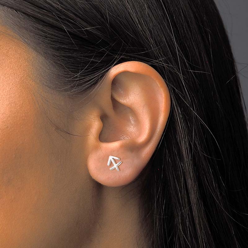 This pair of high polished zodiac earrings is available in Solid .925 Sterling Silver,