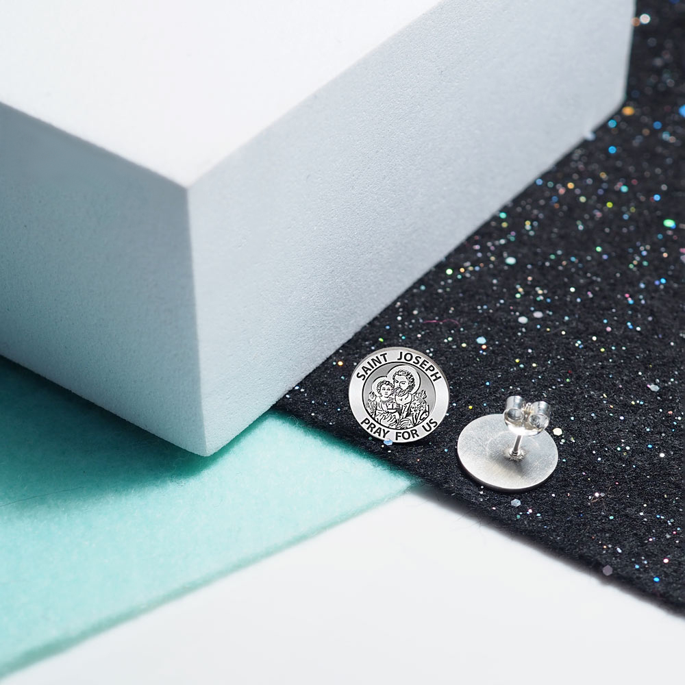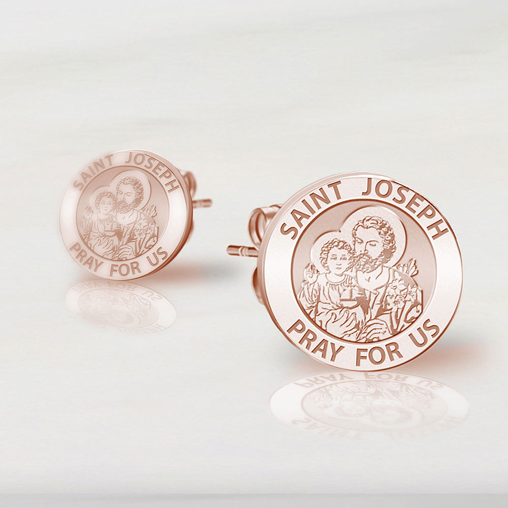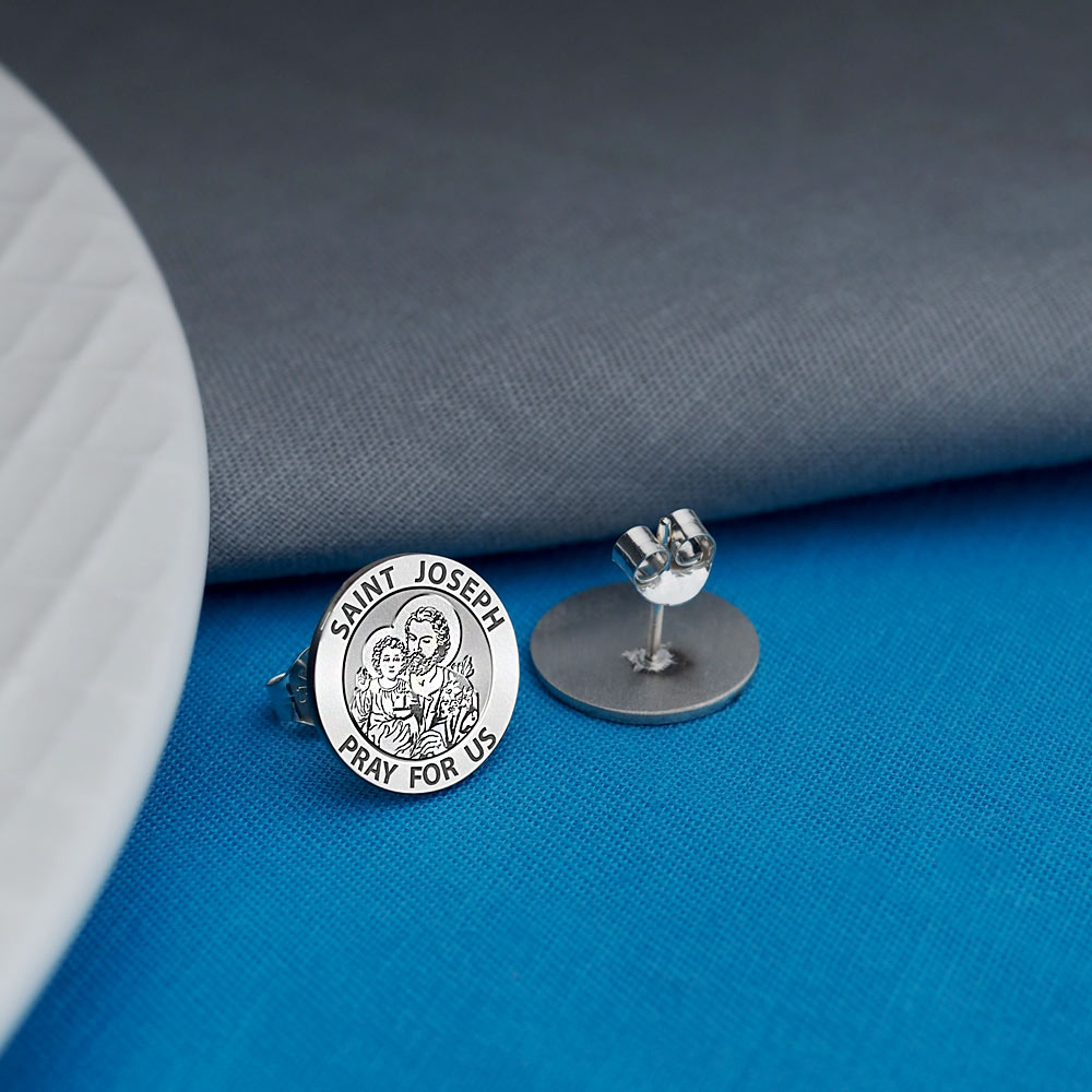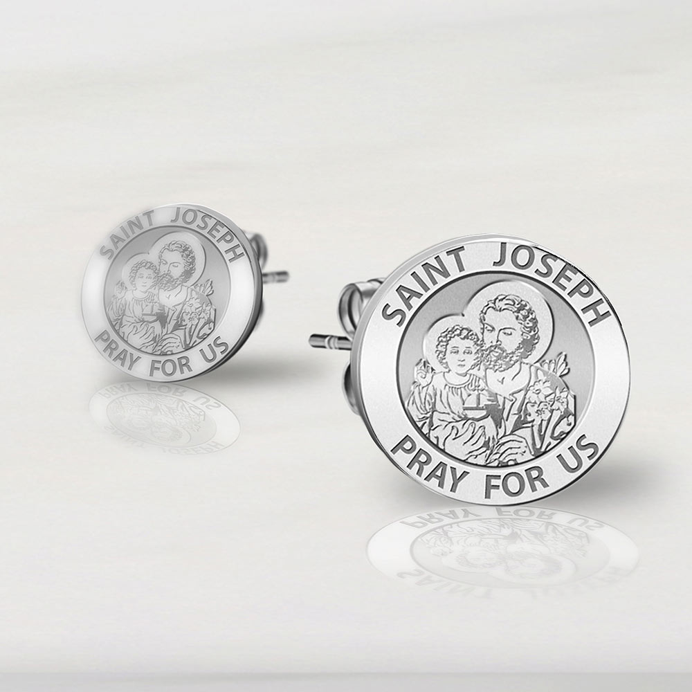 This pair of high polished saint earrings is available in Solid .925 Sterling Silver, Gold Plated, or Solid 14k Gold