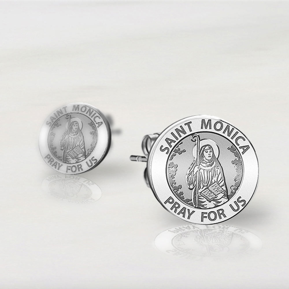 This pair of high polished saint earrings is available in Solid .925 Sterling Silver, Gold Plated, or Solid 14k Gold